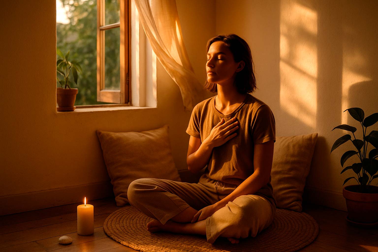 - Respira profundamente y lleva la atención al pecho o al centro del cuerpo.